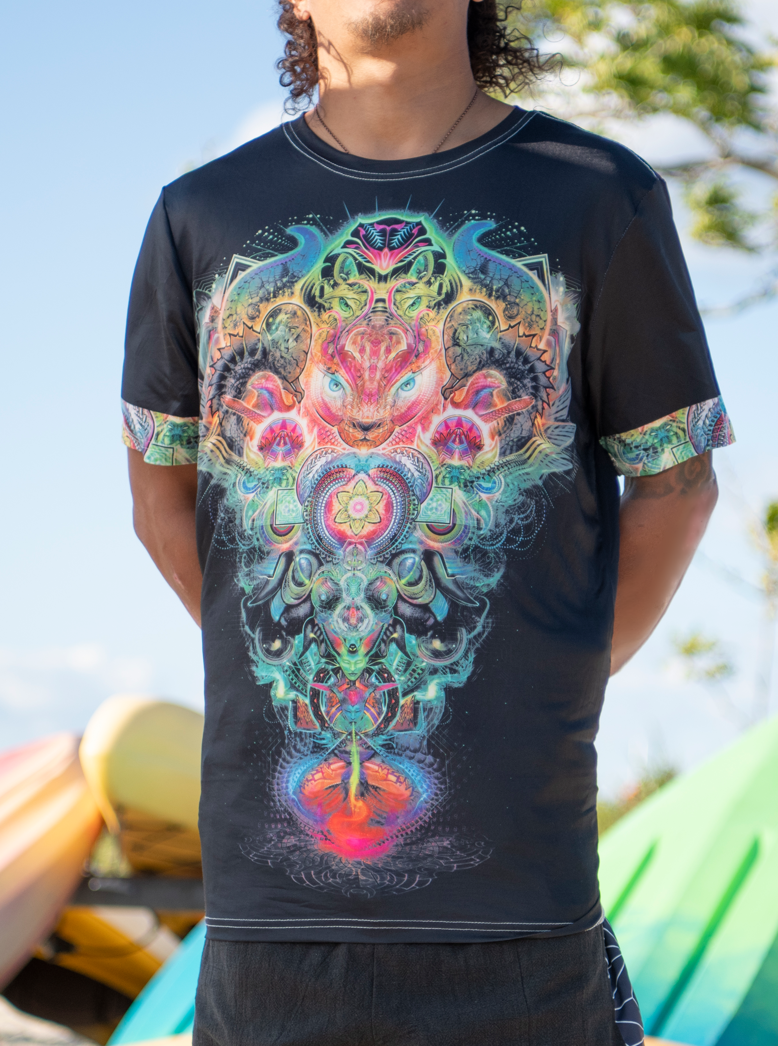 Check out this mind melting Artwork By Eloh Projects on a buttery soft moisture wicking shirt.