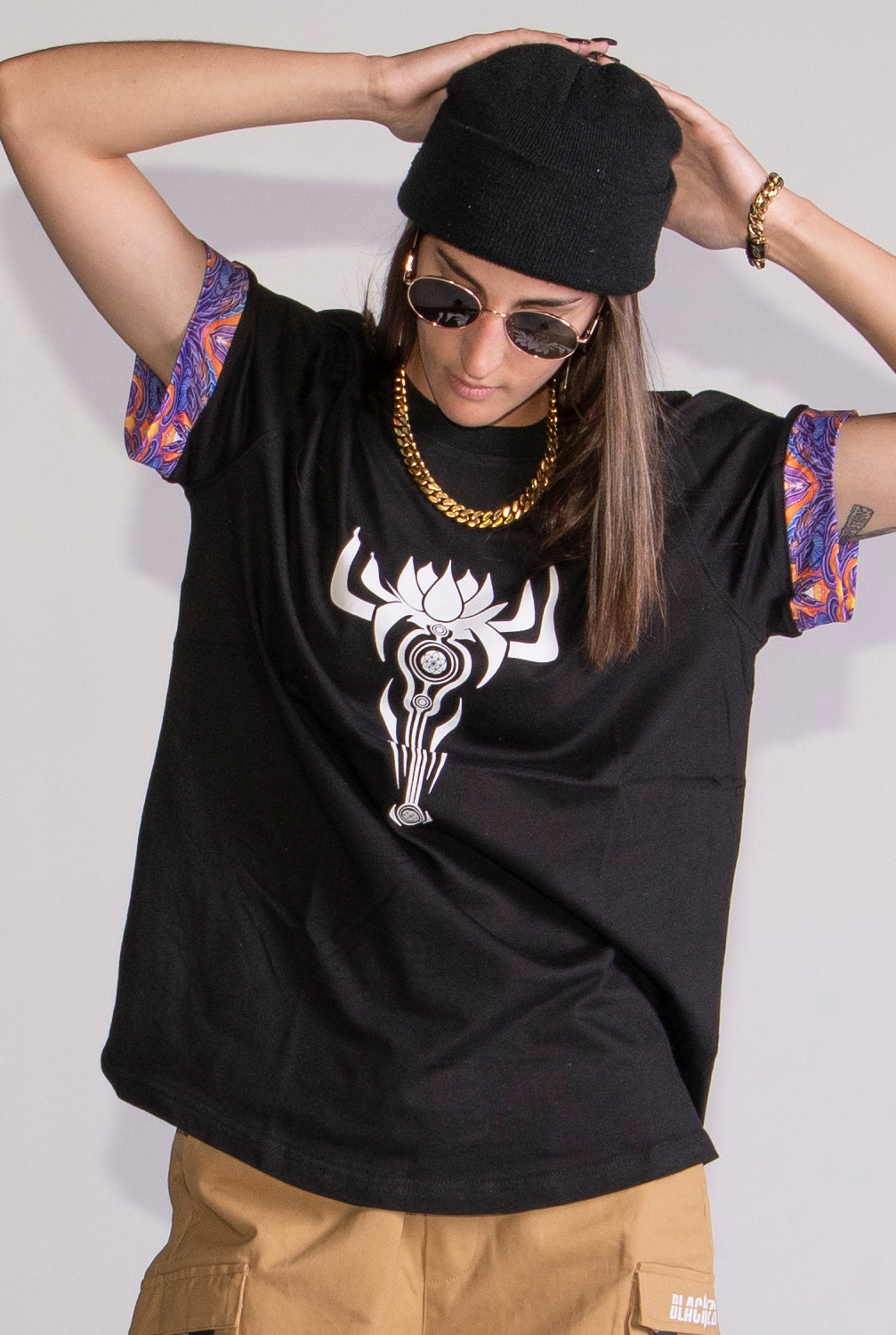 Cop this Collab with Artwork by Demi Casares and a splash of Sun Zumwhalt Art on the sleeves. Enjoy Demi's interstellar linework, with a subtle splash of colors on the sleeves with suns trippy Designs.