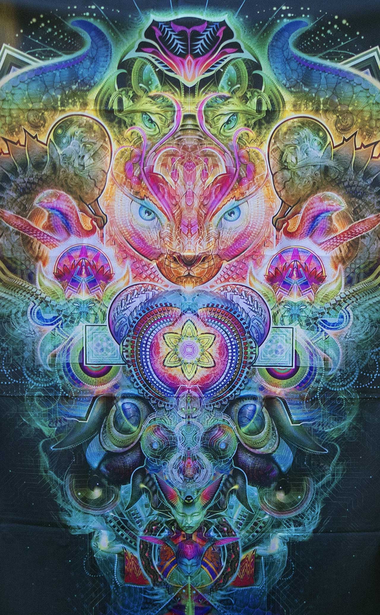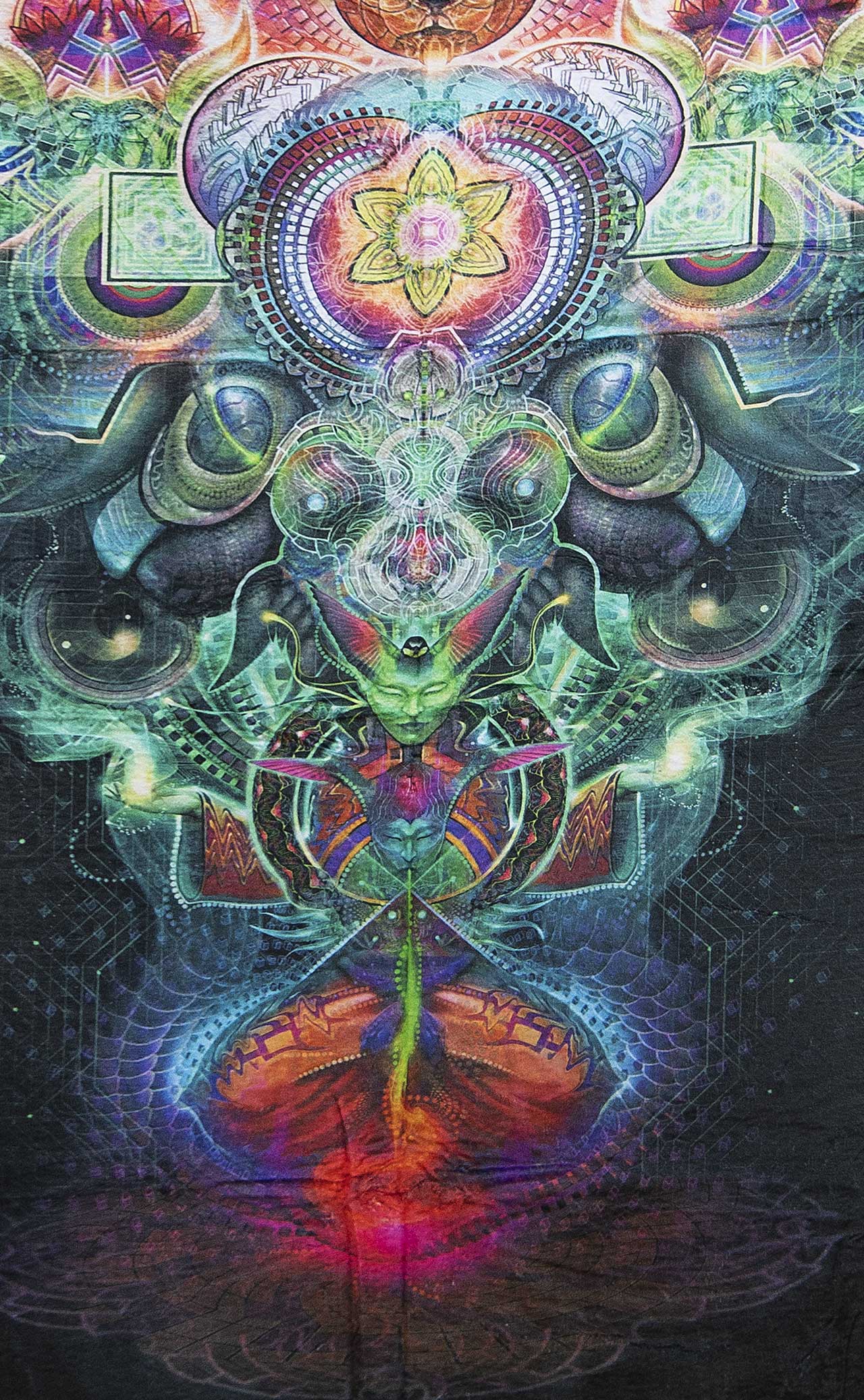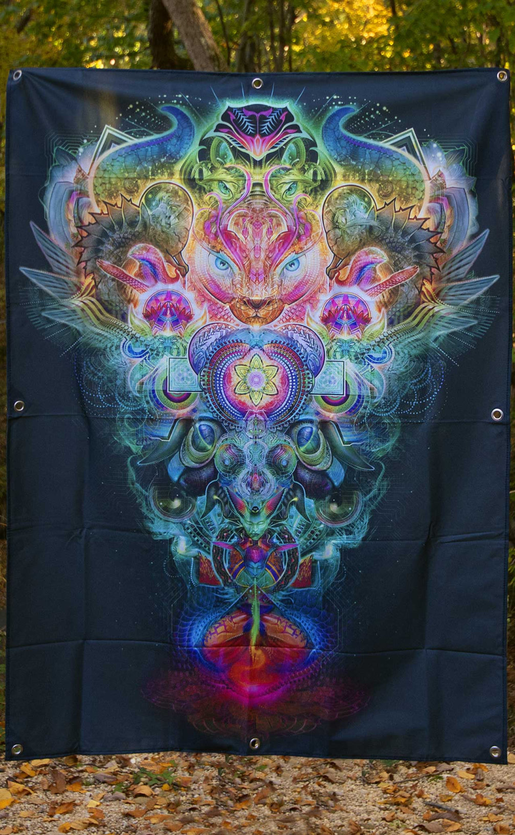 4 ft x 3 ft Tapestry with multiple grommets. Stay flat design will ensure the tapestry will not curl. Artwork by Sun Zumwhalt.